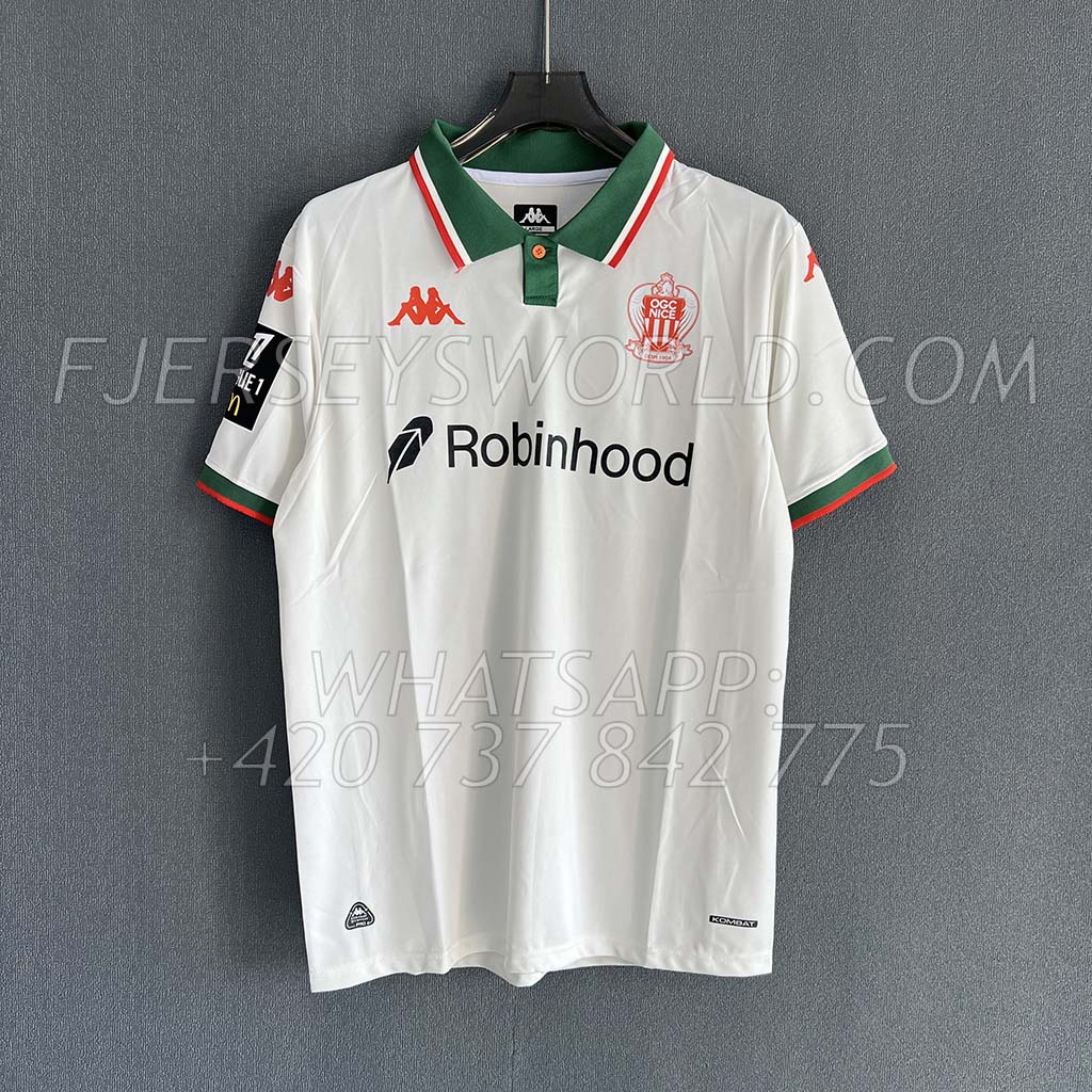 Previous Product Next Product OGC Nice Away 25-26 FAN Version د.م. 200,00 Size Choose an optionSMLXLXXLSMLXLXXLClear Name/Number الاسم و الرقم Yes / نعم (+د.م. 20,00)No / لا Name Here / اكتب الاسم هنا Number Here / اكتب الرقم هنا Patch / باتش Yes / نعم (+د.م. 10,00)No / لا Choose Patch (Only One) / اختر الباتش (واحد فقط) Ligue 1Europa League Product total Options total Grand total OGC Nice Away 25-26 FAN Version quantity Add to cart SKU: N/A Categories: French Teams, Jerseys, Kappa Tag: OGC Nice Description Additional information Reviews (0) Description Additional information Size S, M, L, XL, XXL Reviews There are no reviews yet. Be the first to review “OGC Nice Away 25-26 FAN Version” Cancel replyYour email address will not be published. Required fields are marked *Your rating * Rate… Perfect Good Average Not that bad Very poor Your review *Name * Email * Save my name, email, and website in this browser for the next time I comment. Opens in a new window Tweet This Product Opens in a new window Share on Facebook Opens in a new window Pin This Product Opens in a new window Mail This Product Related products Quick View Quick View Adidas, Jerseys, National TeamsArgentina Home 24-25 FAN Version د.م. 200,00 Select options This product has multiple variants. The options may be chosen on the product page Quick View Quick View Jerseys, National Teams, NikeEngland Away 24-25 PLAYER Version د.م. 240,00 Select options This product has multiple variants. The options may be chosen on the product page Quick View Quick View Adidas, Jerseys, National TeamsBelgium Home 24-25 FAN Version د.م. 200,00 Select options This product has multiple variants. The options may be chosen on the product page